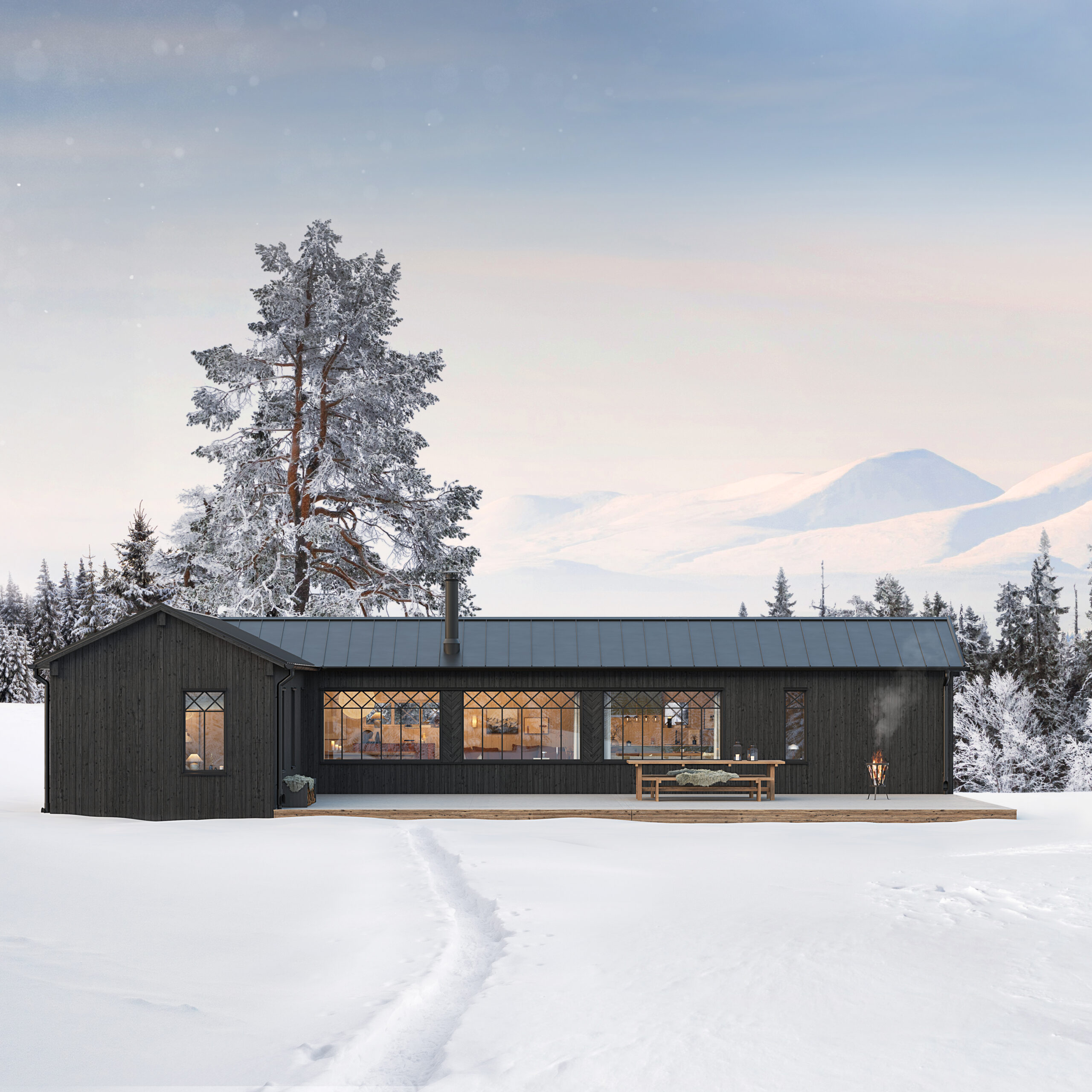 Husen är dimensionerade för fjällens klimat och byggs under kontrollerade former. Du har en ansvarig part genom hela projektet och möjlighet till totalentreprenad med fast pris – för förutsägbarhet i både tid och budget.
