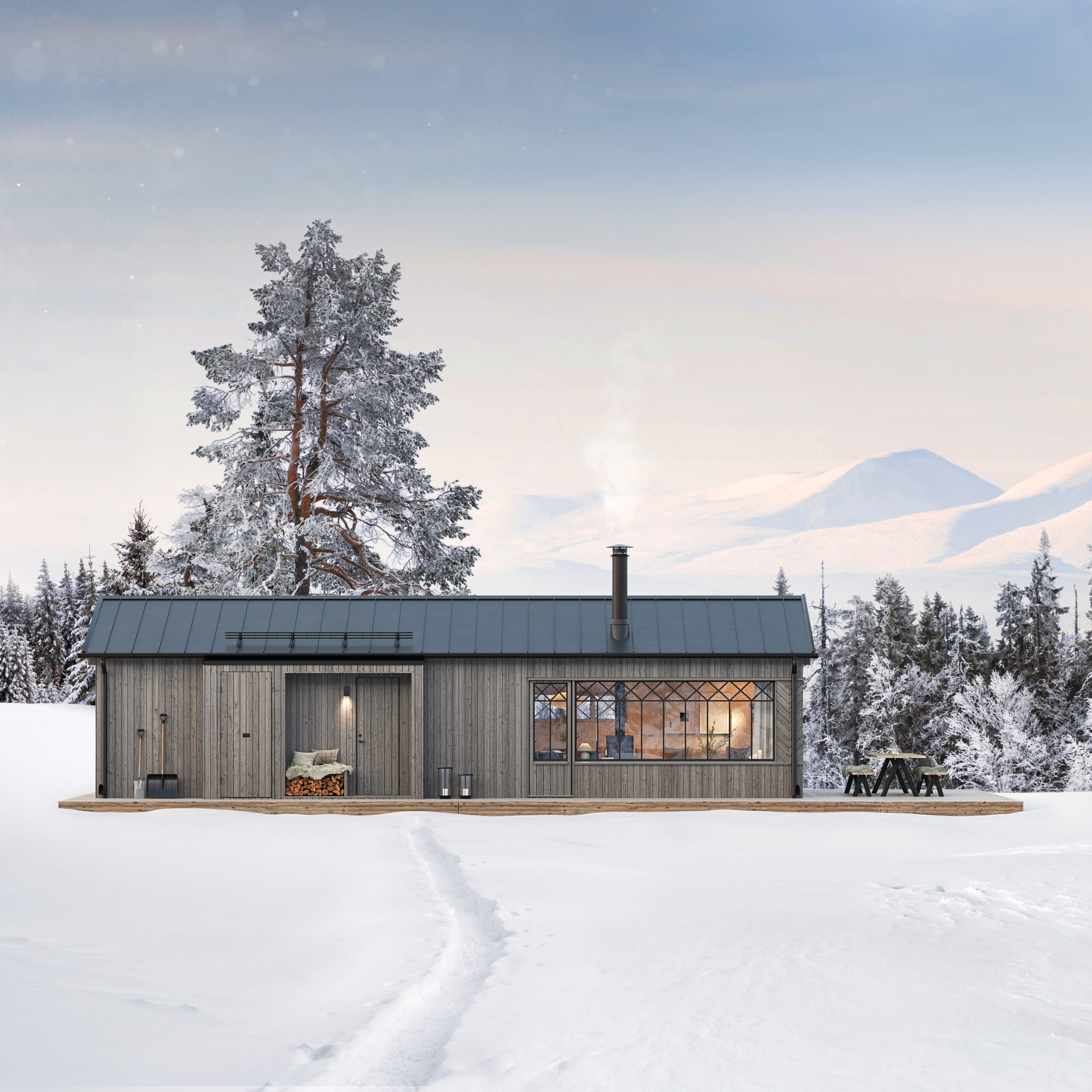 Stora glaspartier ger direkt kontakt med naturen och låter ljuset och utsikten bli en del av vardagen. Samtidigt skapar väl avvägda takformer, robusta material och tydliga detaljer hus som fungerar i ett klimat där snö, vind och stora temperaturskillnader ställer särskilda krav.